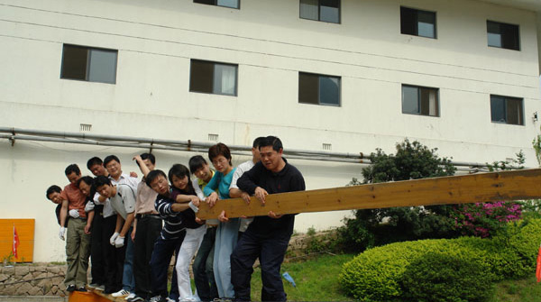項目特點:請兩個隊的隊員全部退到起點線外。請大家利用所給的木板和繩子,在60分鐘內到達對方的起點線。一個隊的全體隊員按時到達為項目成功。